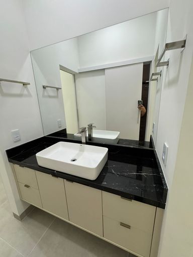 – 01 suíte master com closet planejado e banheiro com granito Preto São Gabriel