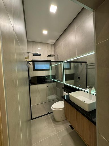 • Casa térrea moderna com pé-direito de 4 metros, trazendo amplitude e sofisticação
