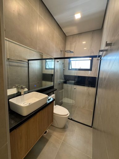 • Casa térrea moderna com pé-direito de 4 metros, trazendo amplitude e sofisticação